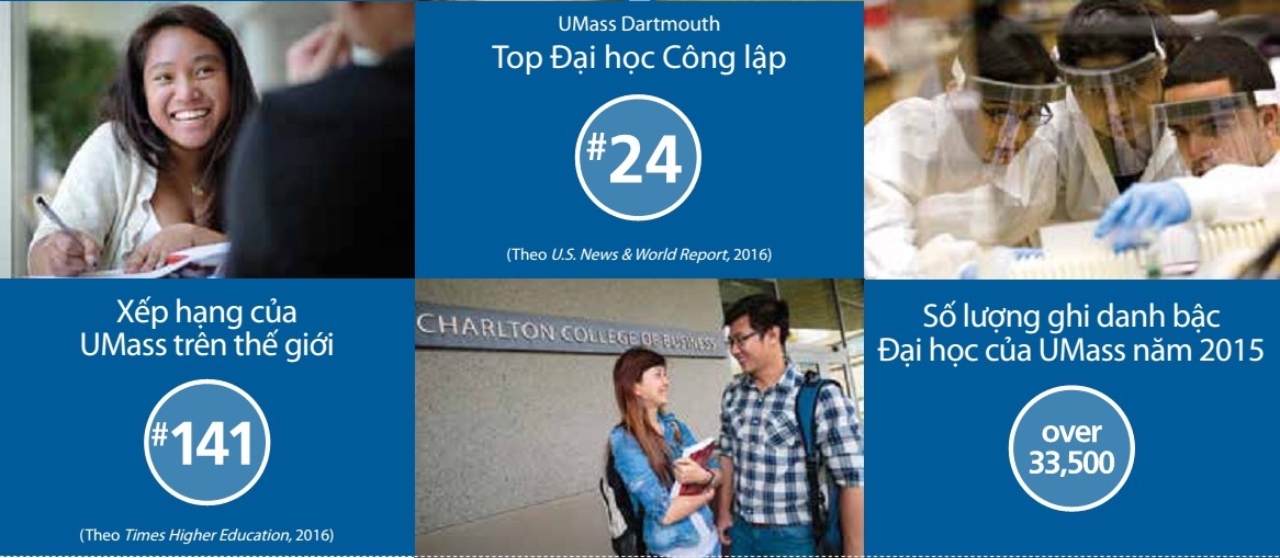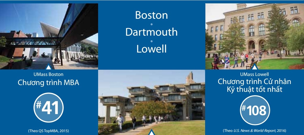 Hệ thống Đại học Umass bao gồm năm cơ sở giảng dạy mang đẳng cấp thế giới tại thủ đô giáo dục của thế giới – bang Massachusetts, Hoa Kỳ. Các sinh viên quốc tế mong muốn lấy được bằng cử nhân hoặc thạc sĩ tại Mỹ, Chúng tôi cung cấp chương trình chuyển tiếp vào UMass Boston, UMass Dartmouth và Umass Lowell. Sinh viên sẽ là sinh viên của trường Đại học ngay từ ngày đầu tiên. Điều này có nghĩa là sinh viên sẽ được tiếp cận với toàn bộ trang thiết bị và dịch vụ hiện đại của trường Đại học, bao gồm: thư viện, phòng máy, khu vực giải trí, ký túc xá, dịch vụ chăm sóc sức khỏe và việc làm.